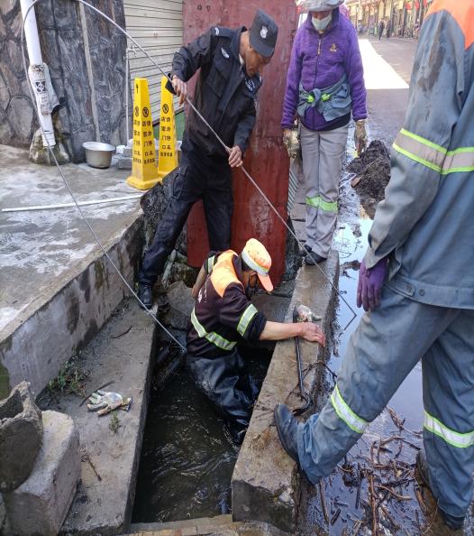 近期由于亞?wèn)|縣強(qiáng)降雨,造成部分下水道被石子及垃圾嚴(yán)重堵塞,縣城道路出現(xiàn)大面積積水情況,即影響了市容市貌,同時(shí)給市民行車安全帶來(lái)了較大的安全隱患,因此,清理工作刻不容緩。從下雨的第二天上午開(kāi)始,我公司環(huán)衛(wèi)工人積極開(kāi)展工作,歷經(jīng)三天時(shí)間對(duì)聯(lián)通營(yíng)業(yè)廳、糧食局等附近堵塞路段的下水道進(jìn)行疏通和除淤清理工作。在積水路段,水位上升至人行道上,排水口位置不清楚,徒手疏通的情況對(duì)于環(huán)衛(wèi)工來(lái)說(shuō)是家常便飯,一名環(huán)衛(wèi)工人說(shuō)到“平時(shí)工作中我們都會(huì)配備火鉗等工具,但是碰到暴雨,排水口吸力較大,這些工具起不到作用,最快的方式就是用手去摸去掏”。經(jīng)過(guò)幾天的辛苦勞作,城區(qū)主次干道大部分路面積水基本排清,道路恢復(fù)原貌,消除了安全隱患,方便了市民生活。