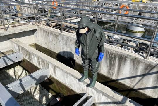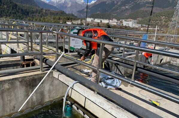 為避免池底及八字口淤泥過多影響出水水質(zhì),11月17日,吉隆鎮(zhèn)污水處理廠安排工作人員采用人工清洗的方法對廠內(nèi)的污水池進(jìn)行徹底的清洗。工作人員以高壓水槍和人工洗刷等方式清除二沉池、斜管沉淀池及出水口等地方的青苔及淤泥,沖洗后的污水通過排空口排到廢水池,進(jìn)行二次處理,污水池及時清洗很大程度上能避免出現(xiàn)二沉池污泥上浮、藻類生長等問題。此次清洗池子既提高了出水水質(zhì),又排除了池子漏水等潛在危險。沖洗完的污水通過調(diào)節(jié)池再一次回流到生化池進(jìn)行二次生化處理,使得廠區(qū)所有污水得到了完善的處理。